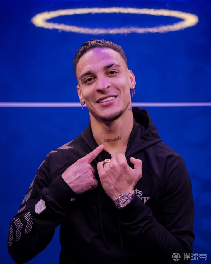 俱乐部官方社交媒体上发布了一张照片,展示了一位名叫安东尼的球员,他脖子上带有一枚西班牙语纹身,其中写着“Iluminado”,表达了“被照亮的;灯火通明的;开明的;有见识的”等意思,引发了不少网友的赞叹和关注。